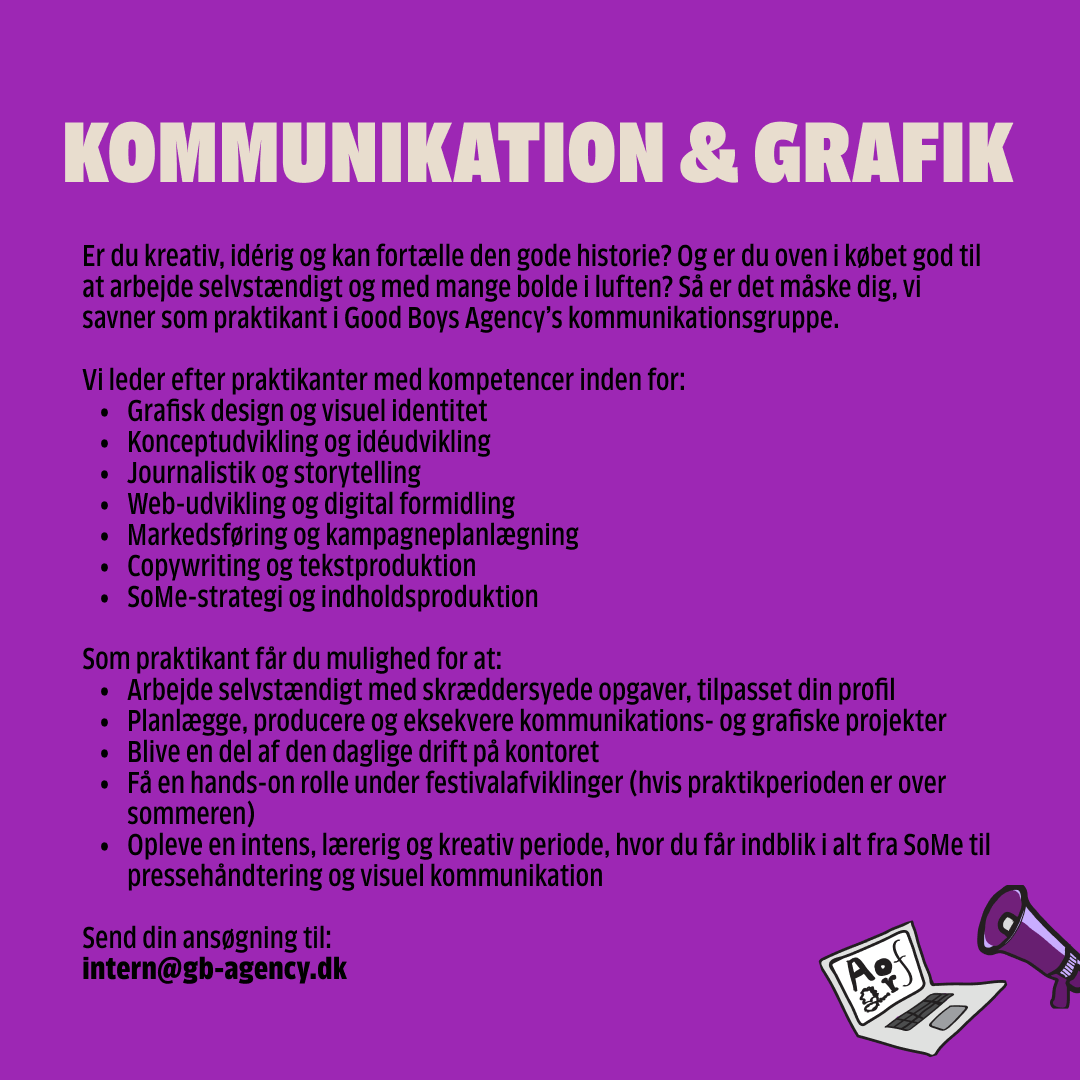 - Kommunikation og Grafik: (Kontakt: intern@gb-agency.dk)